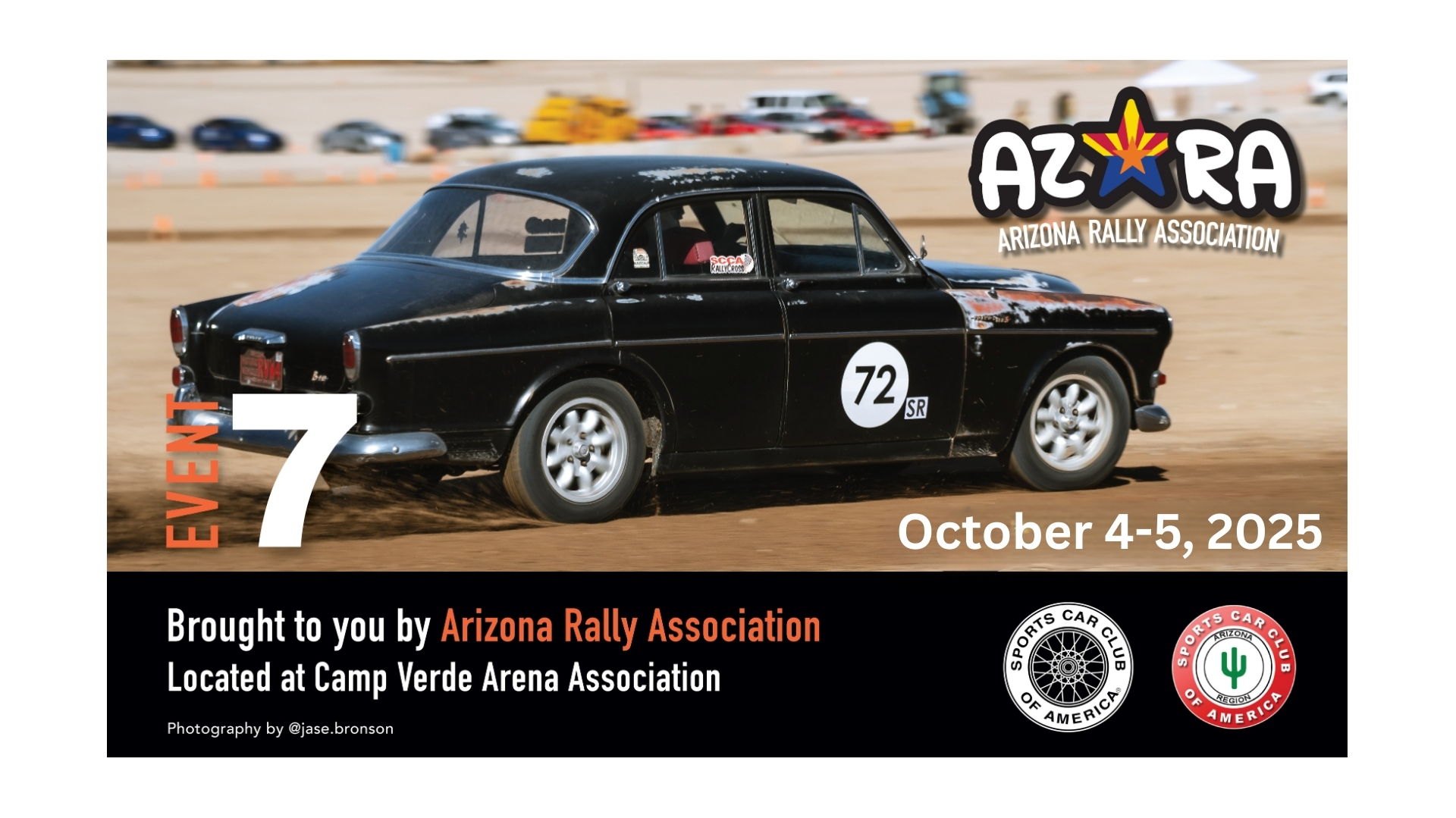 Event Description: Rallycross event for the SCCA Arizona Region brought to you by Arizona Rally Association as well as Camp Verde Equestrian Center. This will be our seventh event of our 2025 season and will follow our two day format with a Saturday practice session and Sunday Competition.