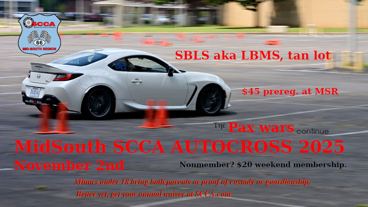 - Online pre-reg discount at motorsportreg. (will run cards Saturday rather than when you pre-reg)